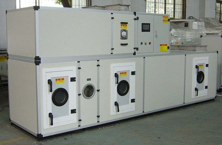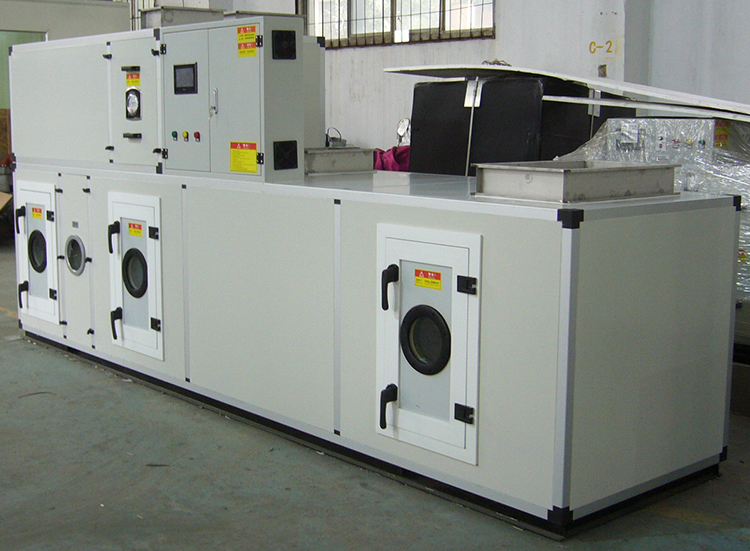 KZHS-750D-5400L锂电池转轮除湿空调机组系转轮除湿与冷冻除湿匹配组合而成。通过对机组处理进风降温减湿,再经转轮深层次除湿后,其处理空气abs含湿量达到设计要求,再经过后级表冷降温到设计温度值,使机组出风温度、相对湿度均能符合用户要求,达到常温低湿的除湿结果。