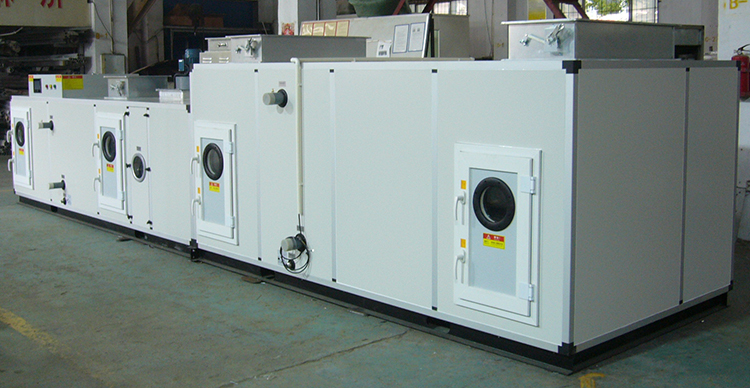 KZHS-770D-15000L印刷转轮除湿空调机组系转轮除湿与冷冻除湿匹配组合而成。通过对机组处理进风降温减湿,再经转轮深层次除湿后,其处理空气abs含湿量达到设计要求,再经过后级表冷降温到设计温度值,使机组出风温度、相对湿度均能符合用户要求,达到常温低湿的除湿结果。