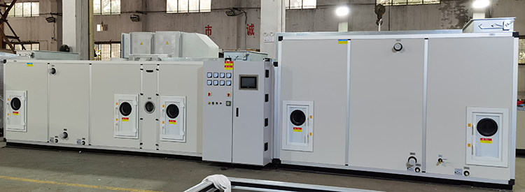 KZHS-1370D-23000L汽车配件转轮除湿空调机组系转轮除湿与冷冻除湿匹配组合而成。通过对机组处理进风降温减湿,再经转轮深层次除湿后,其处理空气abs含湿量达到设计要求,再经过后级表冷降温到设计温度值,使机组出风温度、相对湿度均能符合用户要求,达到常温低湿的除湿结果。