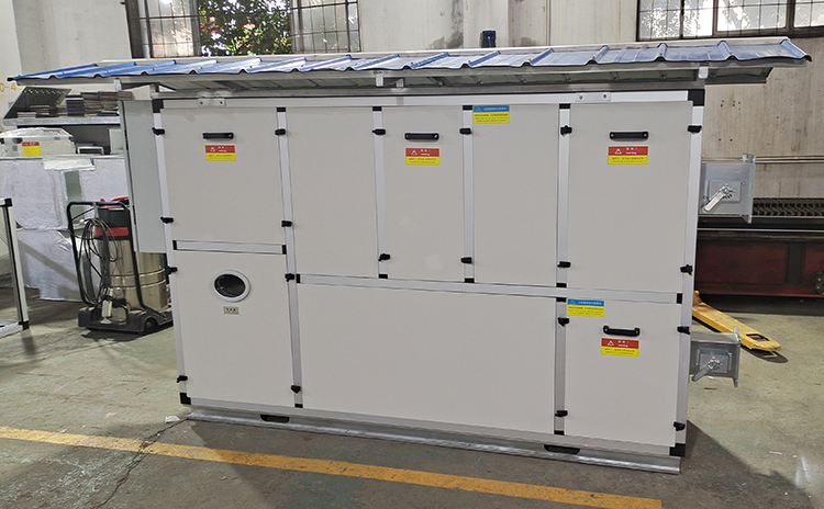 KZHS-350D-1400DZ(雨棚)转轮除湿空调机组系转轮除湿与冷冻除湿匹配组合而成。通过对机组处理进风降温减湿,再经转轮深层次除湿后,其处理空气abs含湿量达到设计要求,再经过后级表冷降温到设计温度值,使机组出风温度、相对湿度均能符合用户要求,达到常温低湿的除湿结果。