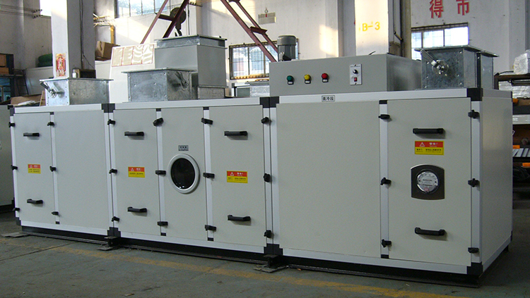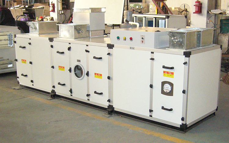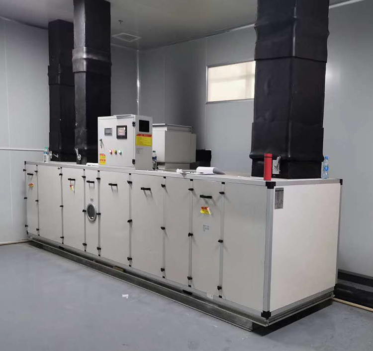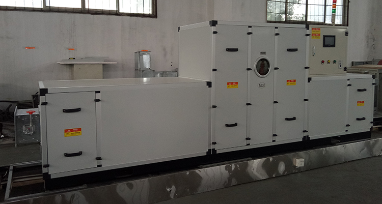 硒鼓碳粉转轮除湿空调机组系转轮除湿与冷冻除湿匹配组合而成。通过对机组处理进风降温减湿,再经转轮深层次除湿后,其处理空气abs含湿量达到设计要求,再经过后级表冷降温到设计温度值,使机组出风温度、相对湿度均能符合用户要求,达到常温低湿的除湿结果。