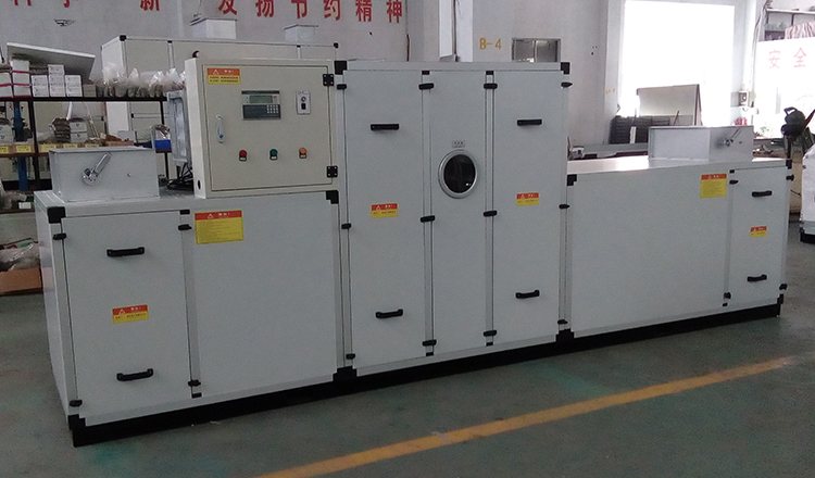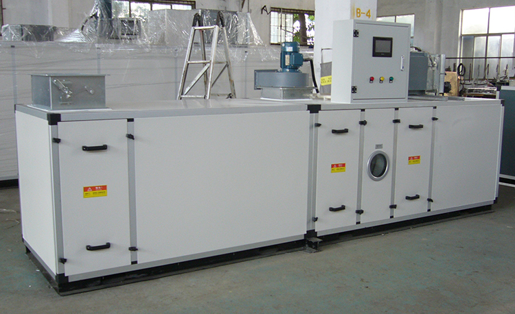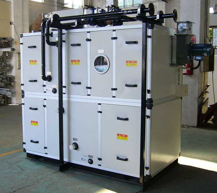 KZHS-650DQ-3000L农药化肥转轮除湿空调机组系转轮除湿与冷冻除湿匹配组合而成。通过对机组处理进风降温减湿,再经转轮深层次除湿后,其处理空气abs含湿量达到设计要求,再经过后级表冷降温到设计温度值,使机组出风温度、相对湿度均能符合用户要求,达到常温低湿的除湿结果。